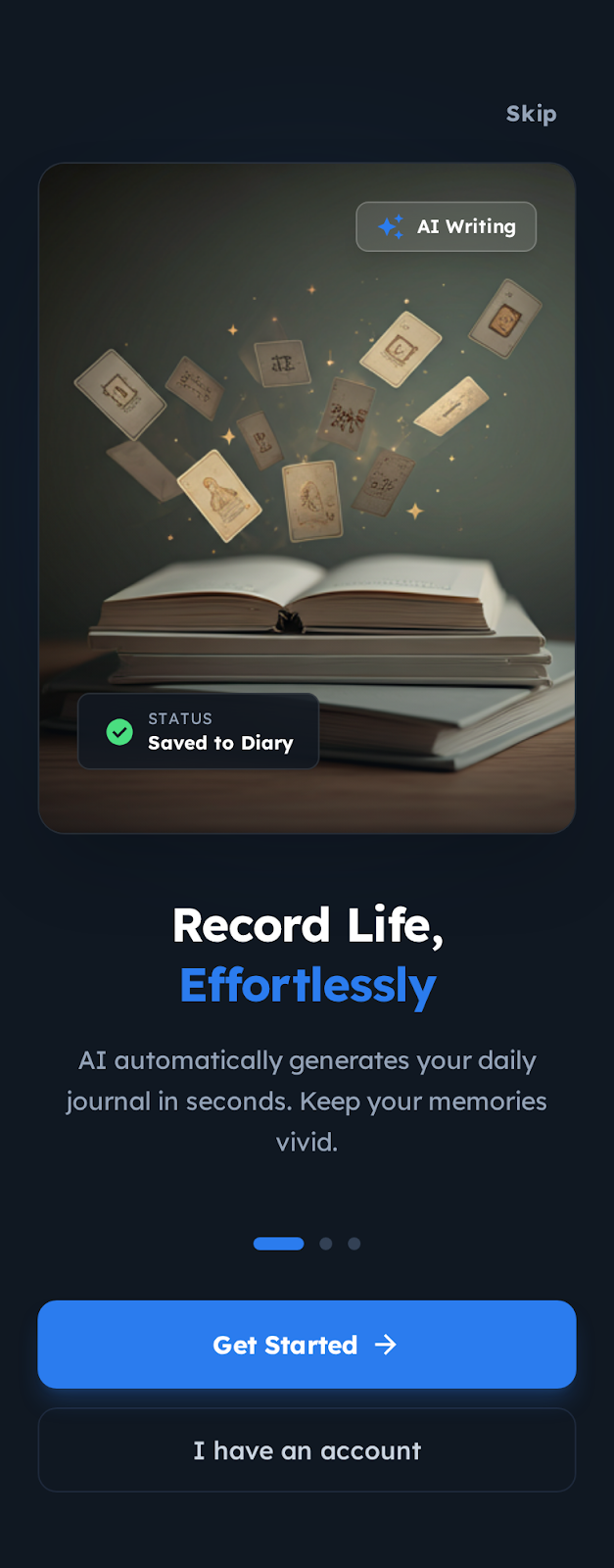 AI automatically generates your daily journal in seconds. Keep your memories vivid.